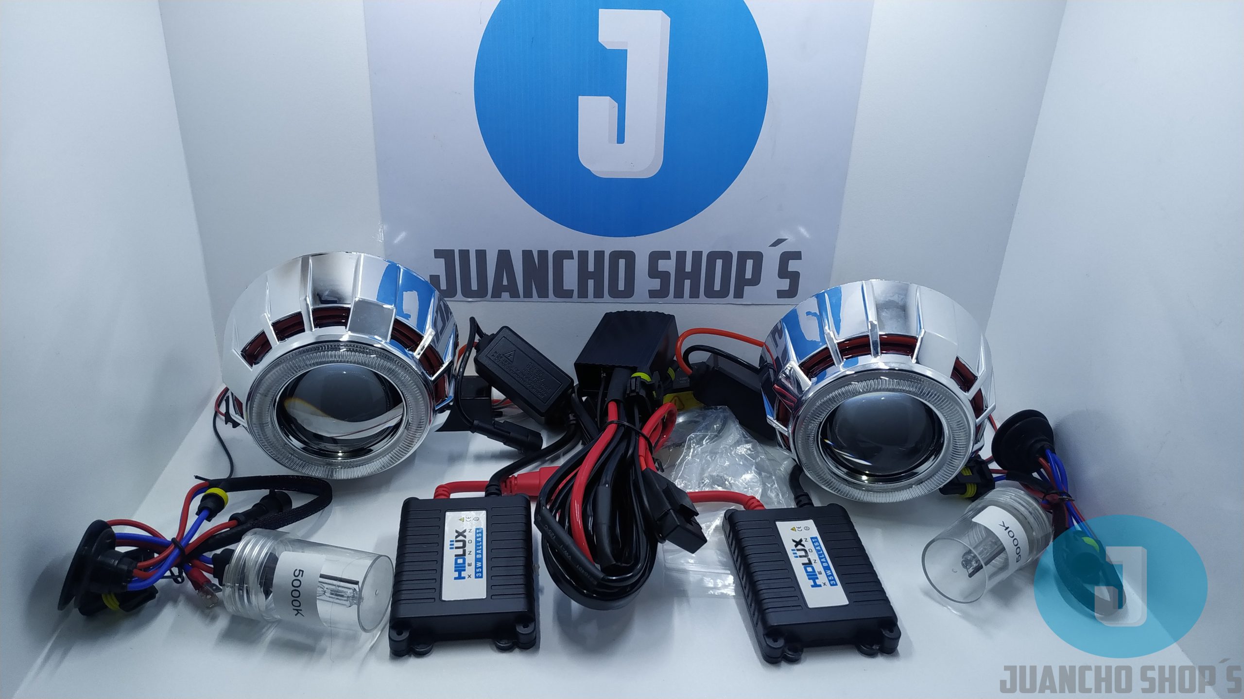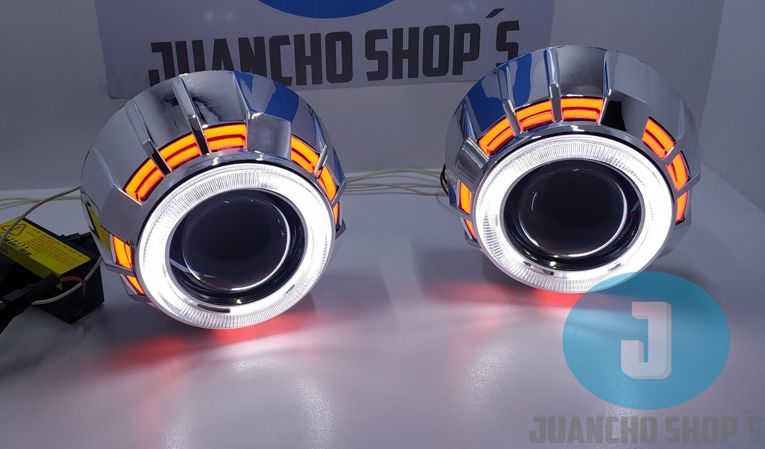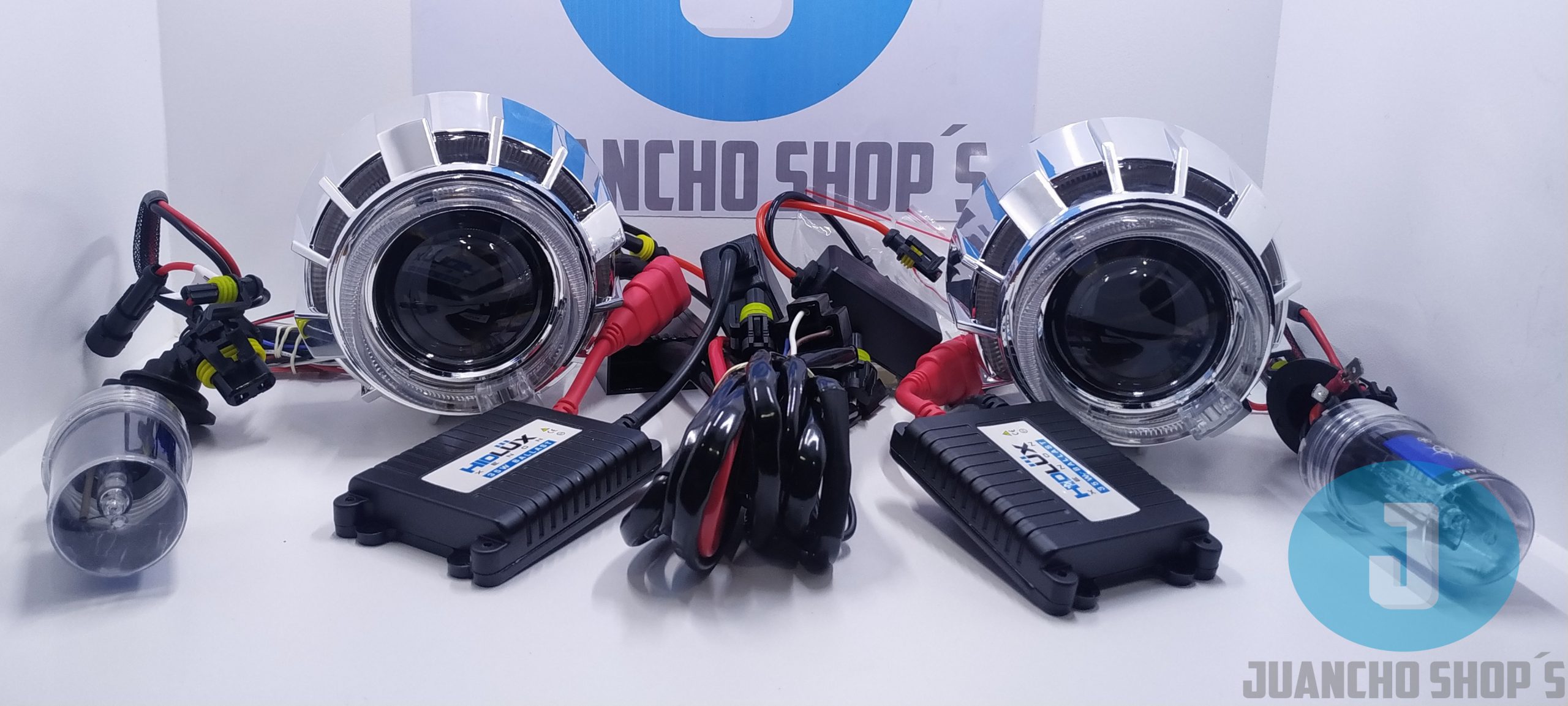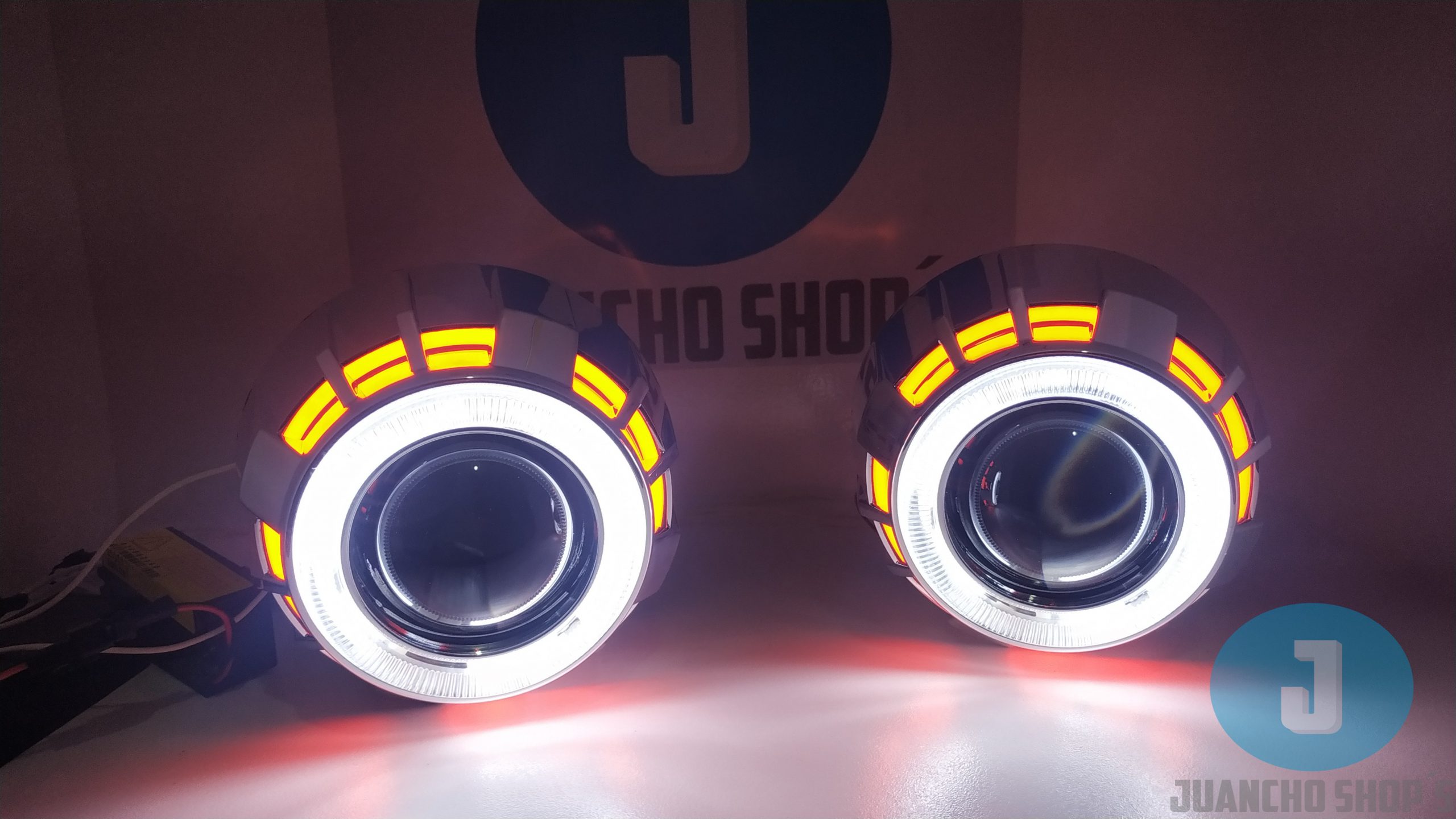 Con doble ojo de angel o doble ojo de diablo incluye todo lo necesario para su instalacion y conversion en vehiculos con sistema de luces H4 o H7, lupas de largo alcance diseñadas para no encandilar a los demas conductores. PASA TECNOMECANICA.