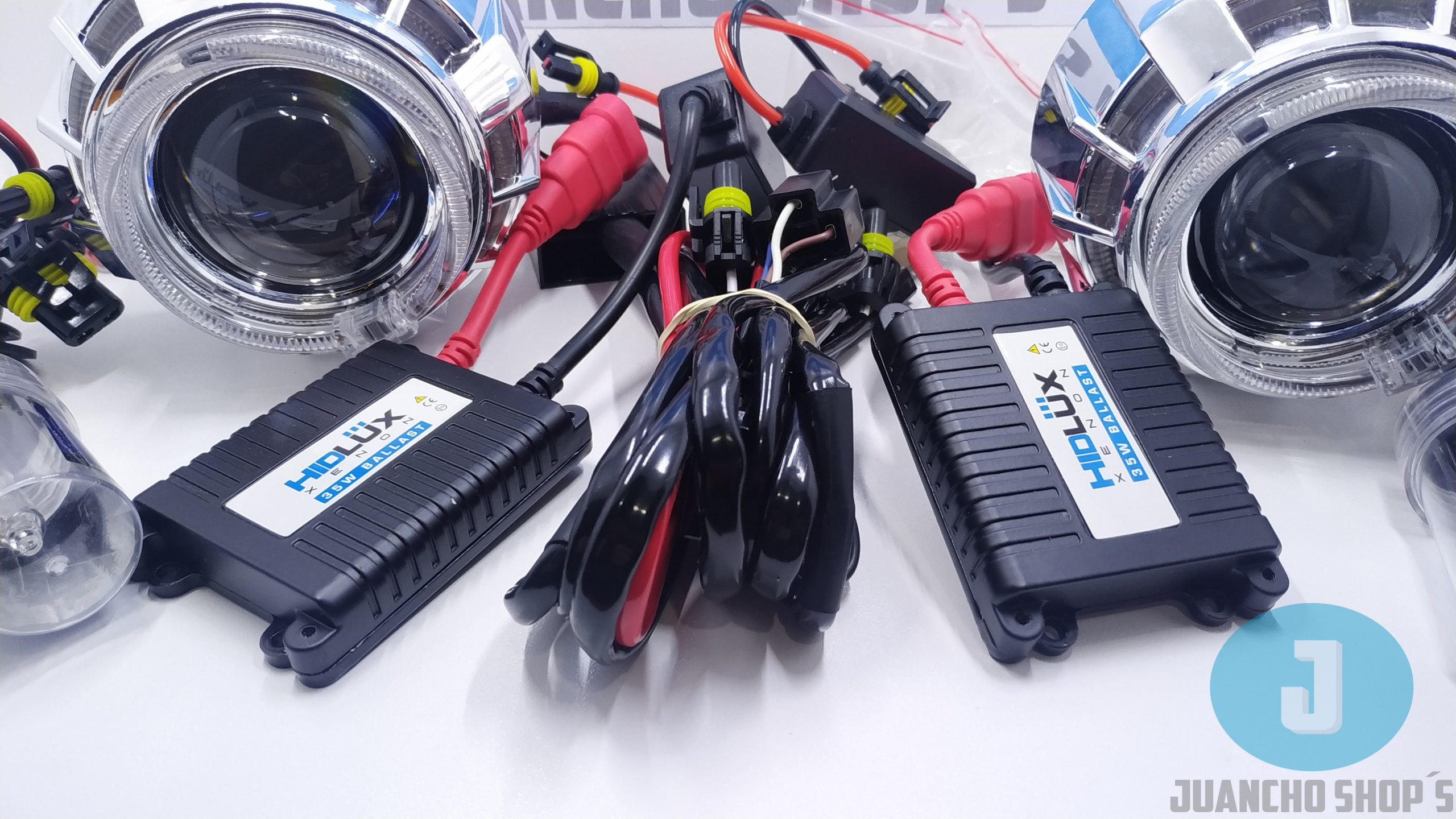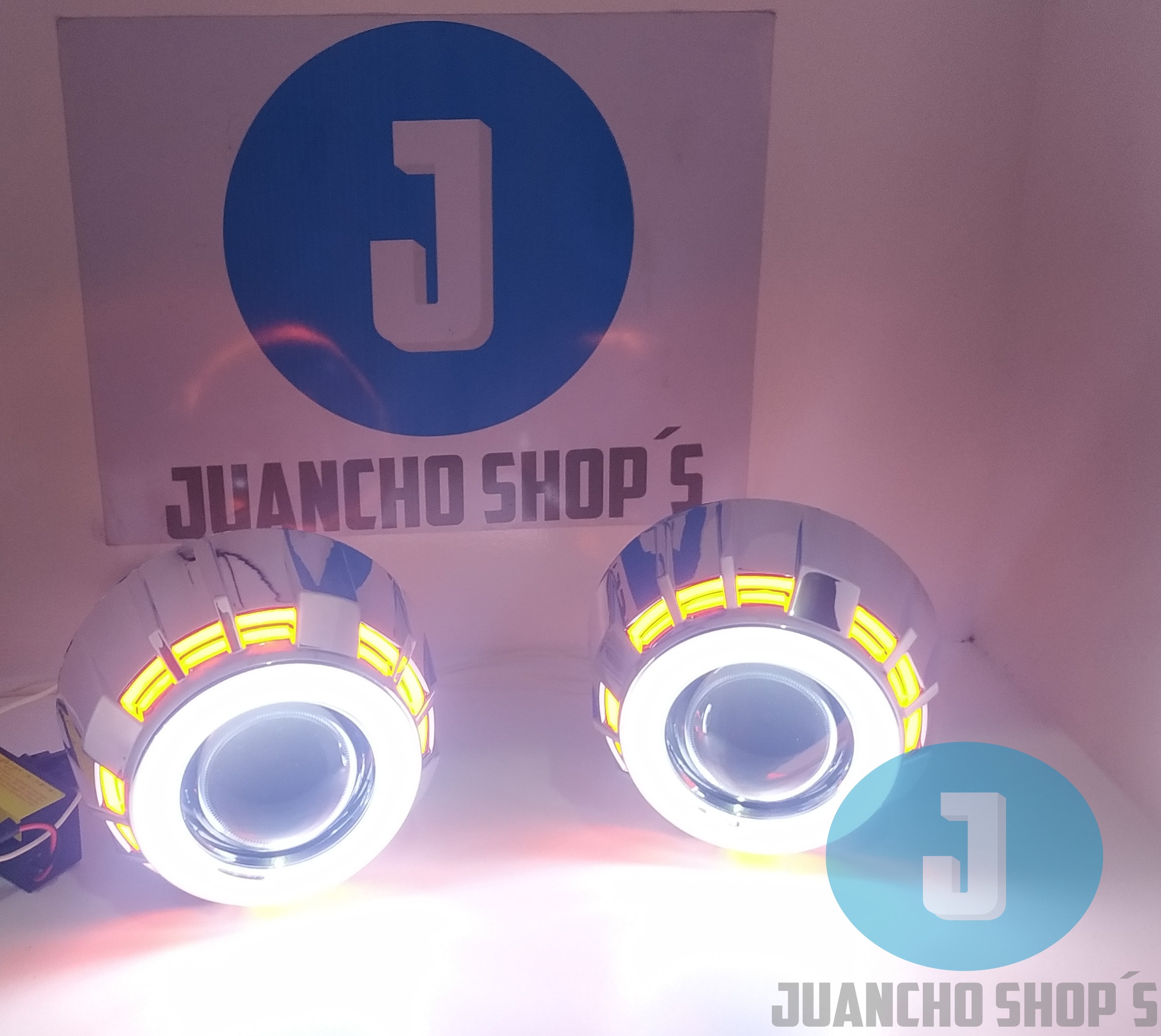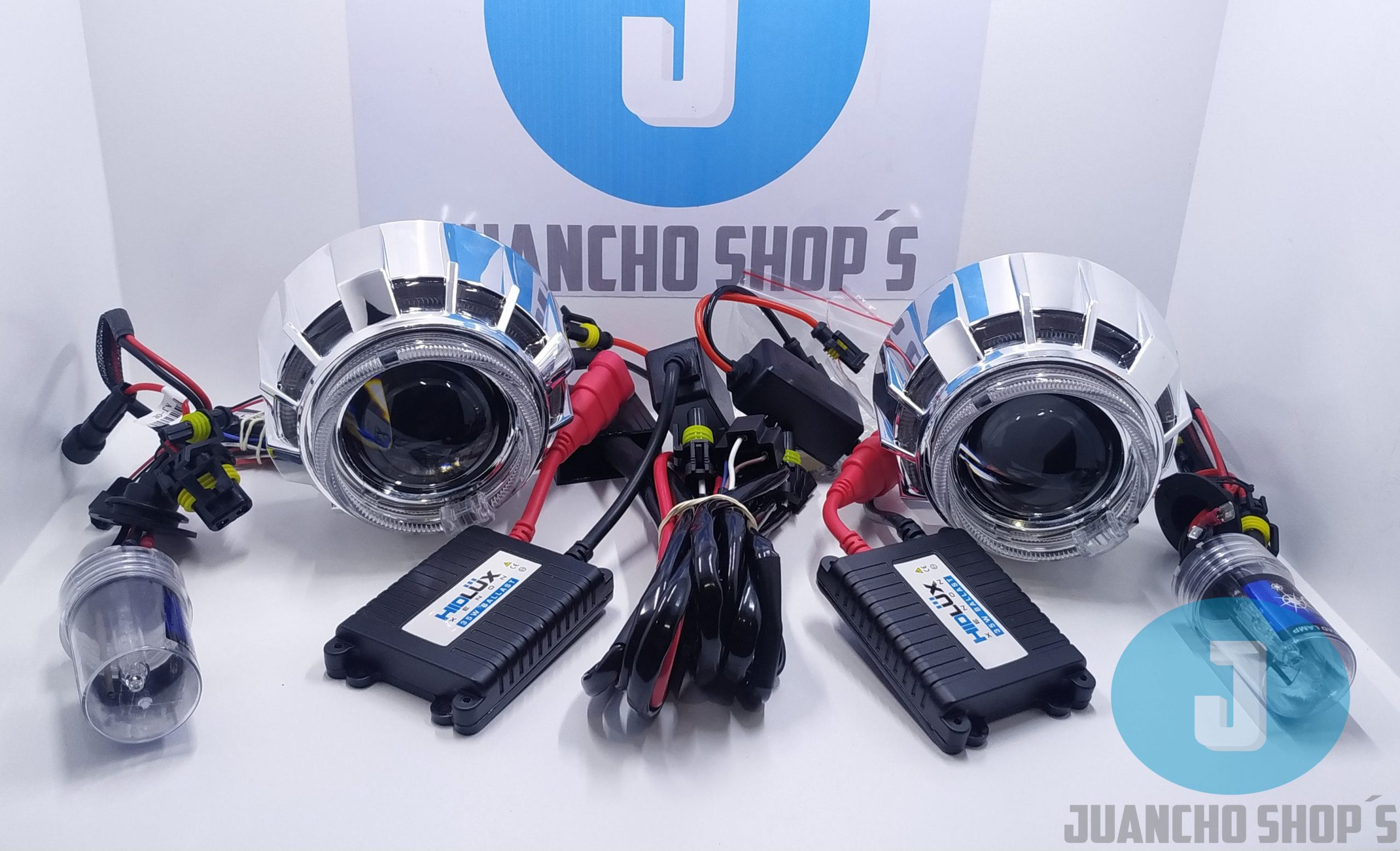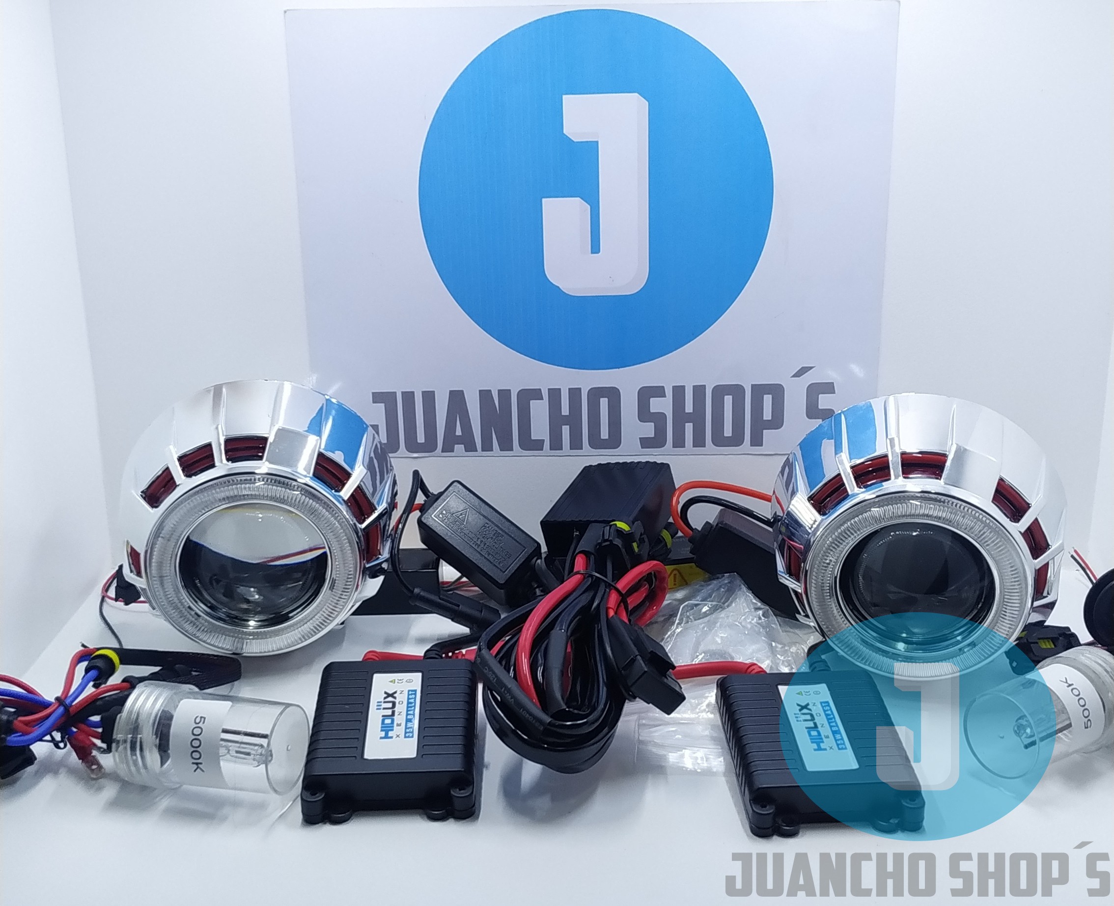 Con doble ojo de angel o doble ojo de diablo incluye todo lo necesario para su instalacion y conversion en vehiculos con sistema de luces H4 o H7, lupas de largo alcance diseñadas para no encandilar a los demas conductores. PASA TECNOMECANICA.