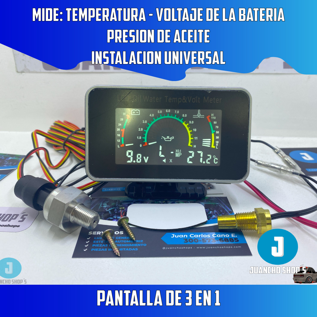 Inicio Catalogo Catalogo de vehiculos Catalogo Celulares Catalogo Video Juegos Catalogo Motocicletas Contacto Ubicacion y Medios de pago Menu Inicio Catalogo Catalogo de vehiculos Catalogo Celulares Catalogo Video Juegos Catalogo Motocicletas Contacto Ubicacion y Medios de pago 300 5736885 PrevAnterior SigienteNext RF0044 Pantalla LCD 3 en 1 Informacion del producto. Pantalla LCD con 3 indicadores de vehÃculo. CaracterÃsticas: Temperatura del agua Presión de aceite. Voltaje de la baterÃa Voltaje desde 9V a 36V Presión desde 0,00 a 1.000 Mpa Medidor de temperatura de agua desde -10 grados hasta 110 grados Alertas visual y sonoras Incluye: Cables de 5 mts para la instalación. Incluye pera de temperatura y sensor de presión de aceite. Instalacion Precio- COMPRAR *El precio no incluye gastos de envio ni instalacion**El precio no incluye gastos de envio Contacto Telefonos de contacto: 300 573 6885 – 300 7254998 Direccion: Cra 46a No 52 38 Itagui Los Naranjos Ubicacion