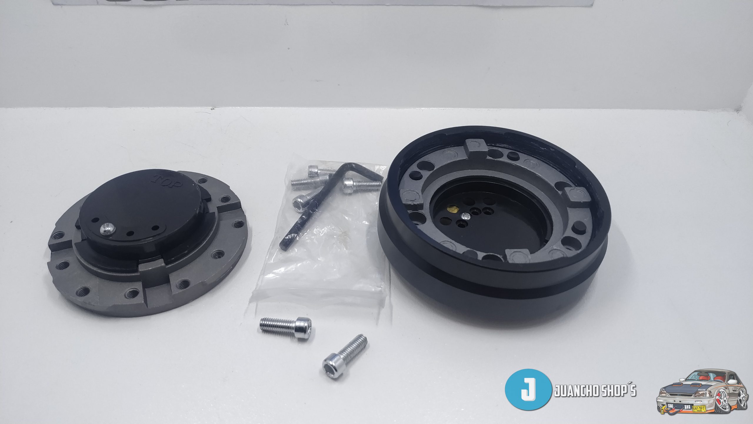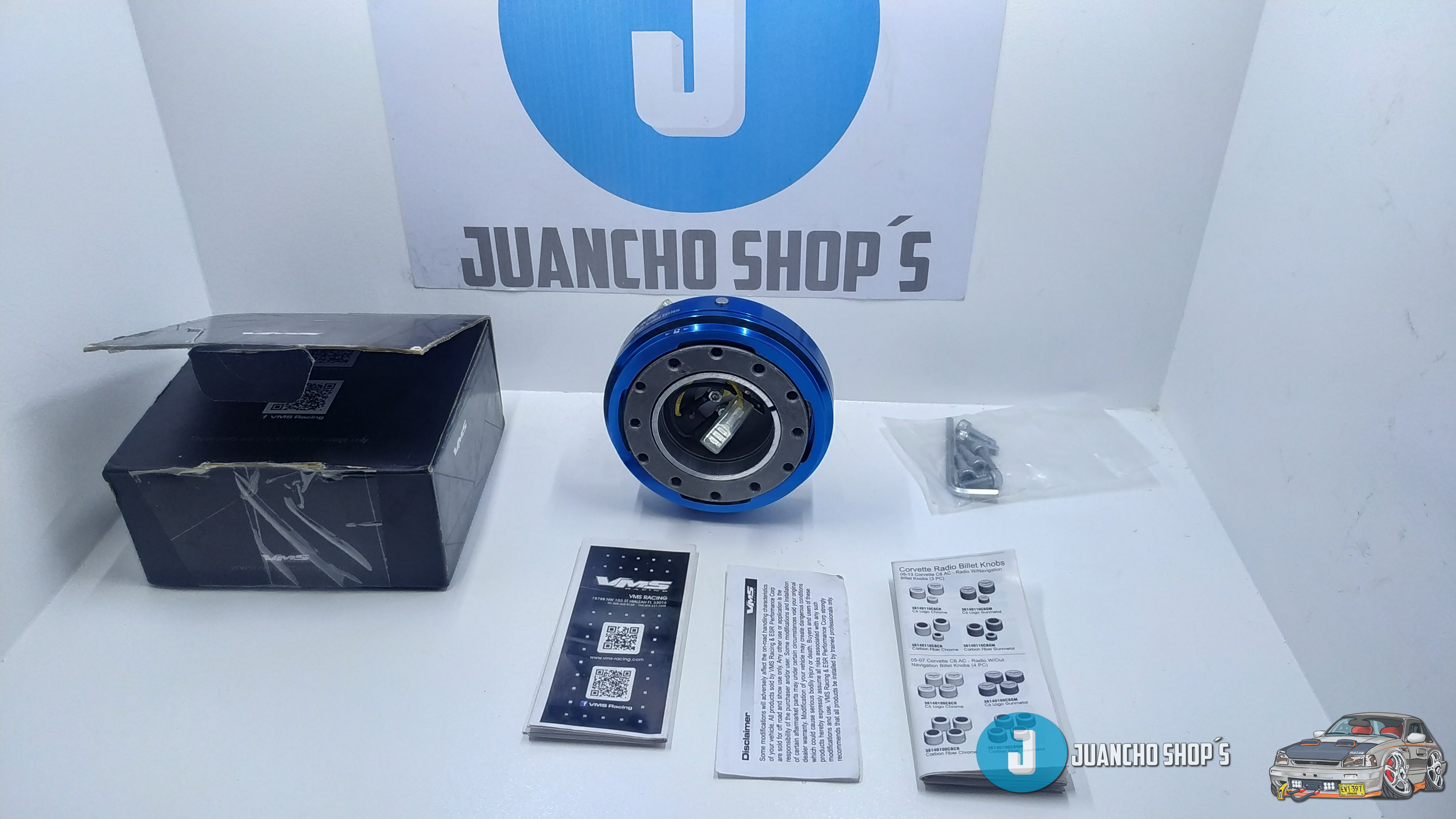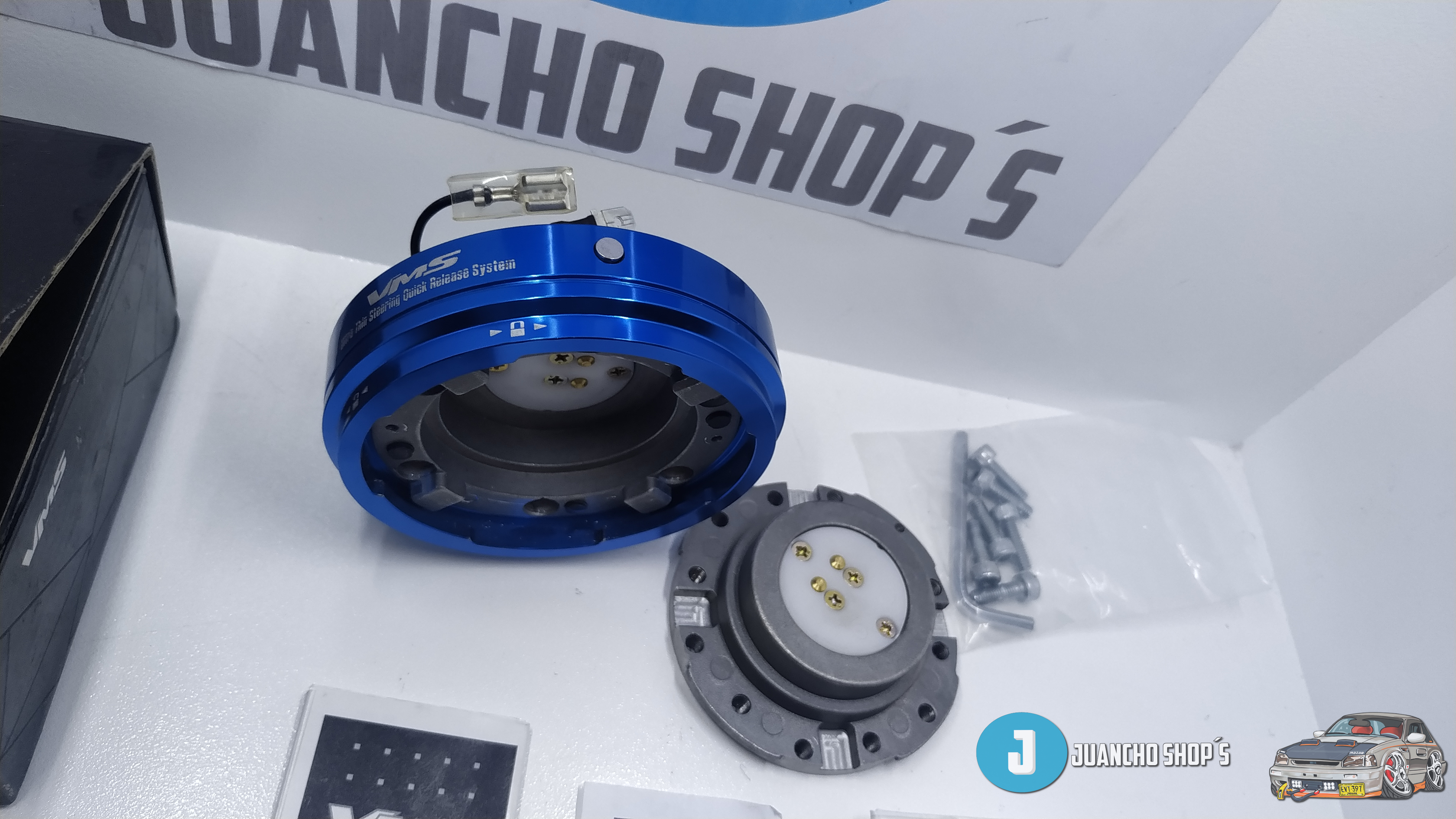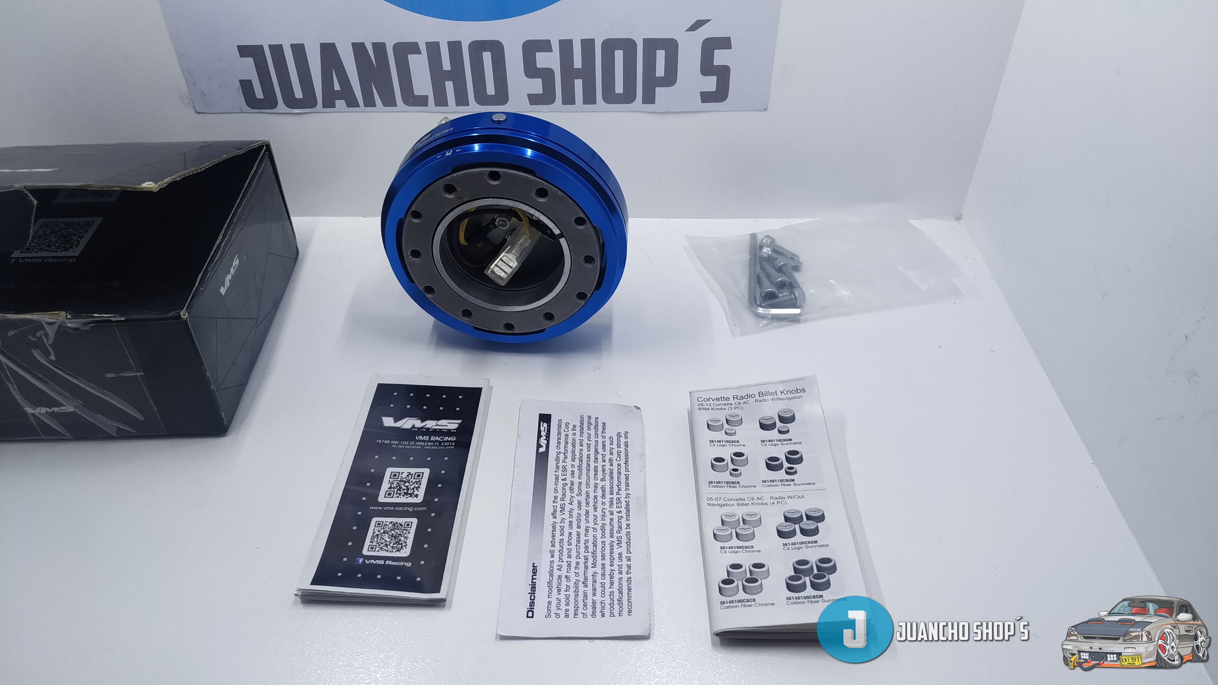 El VMS Racing Thin Quick Release presenta todos los componentes de aluminio con un estructura con balines de seguridad. Esta liberación rápida está diseñada para integrarse con los adaptadores de buje más conocidos del mercado y aceptará los volantes del mercado de accesorios más populares con un buje de 6 pernos MOMO / Nardi estándar.