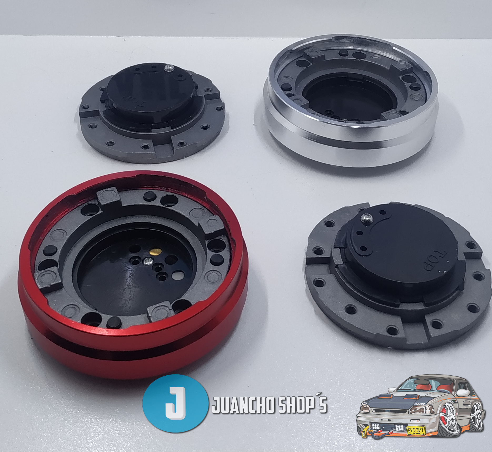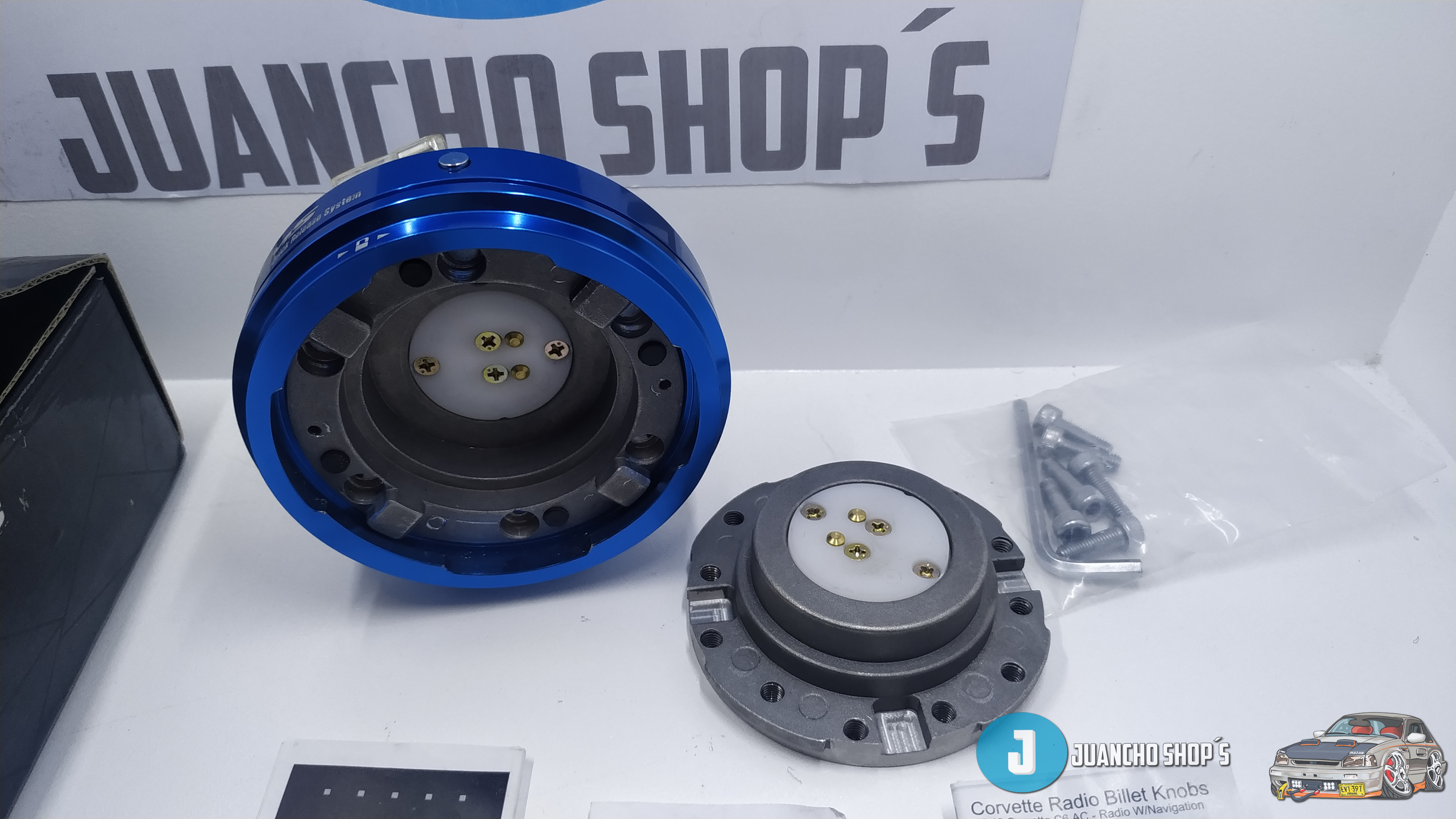 El kit VMS Racing Thin Quick Release utiliza un mecanismo de bloqueo de pasador y engranaje para una máxima durabilidad, sin juegos en el volante, al tiempo que reduce el espacio requerido. Esto es perfecto para aquellos que sienten la necesidad de poner el volante más lejos de ellos, o para aquellos que quieren usar un buje de tipo aplastamiento.