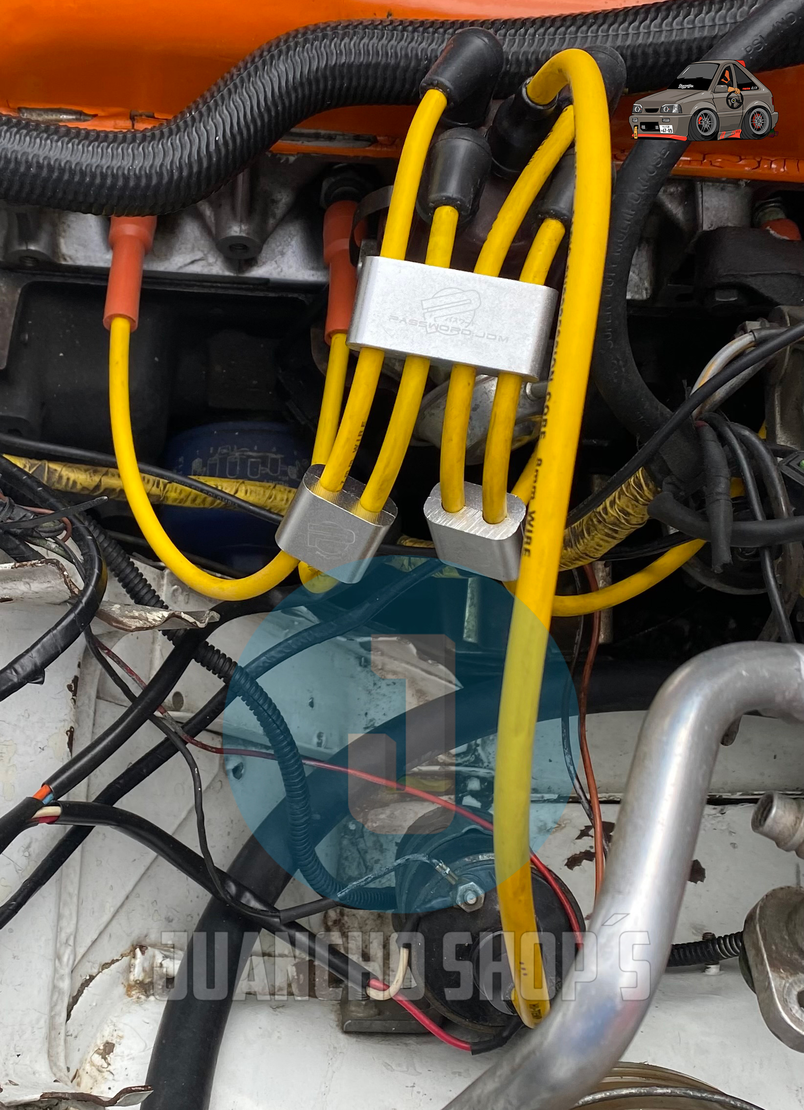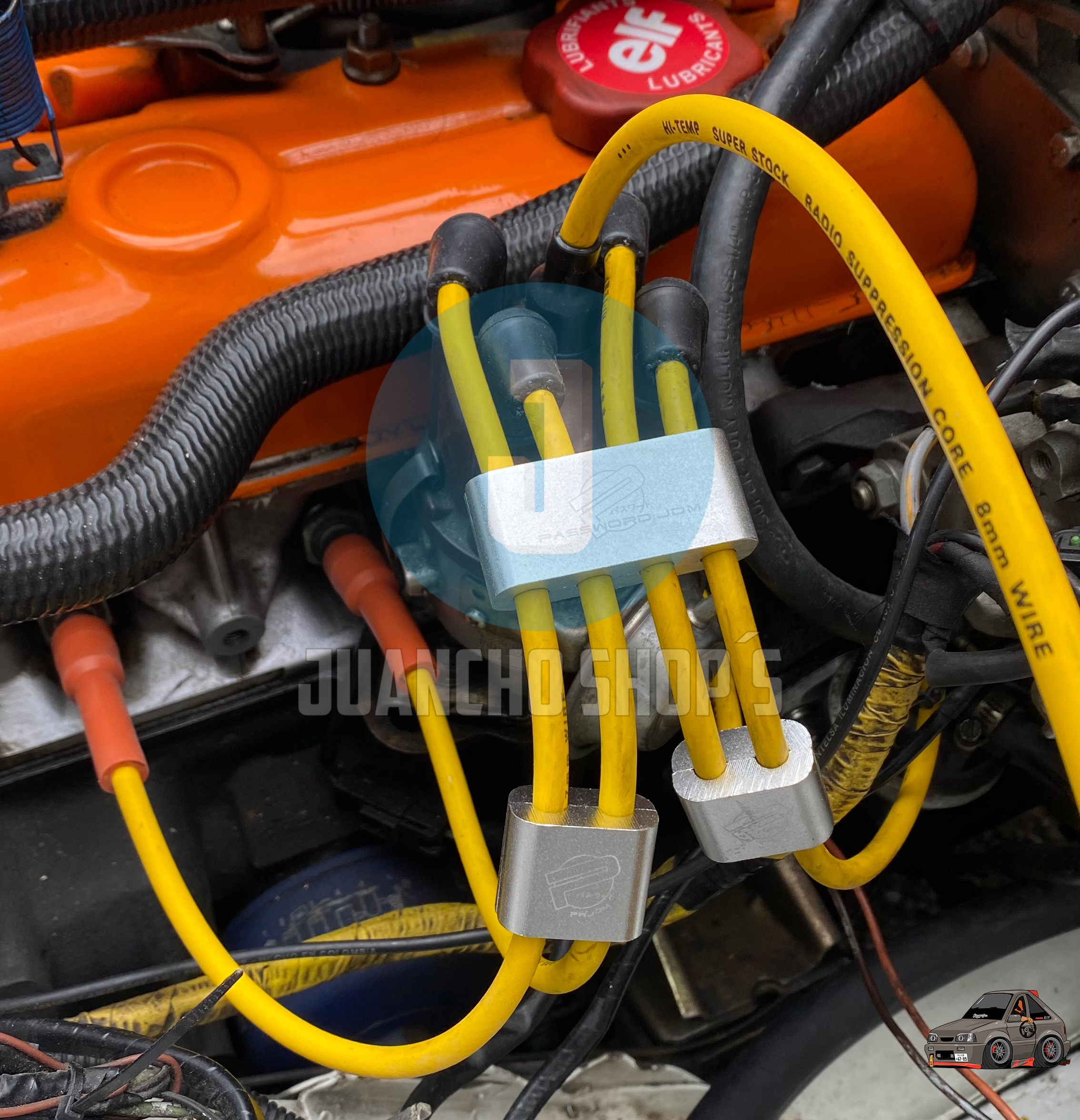 Hermosos sujetadores para los cable de alta en aluminio, pintura metalizada, dele un aspecto diferente a su motor con este accesorio.