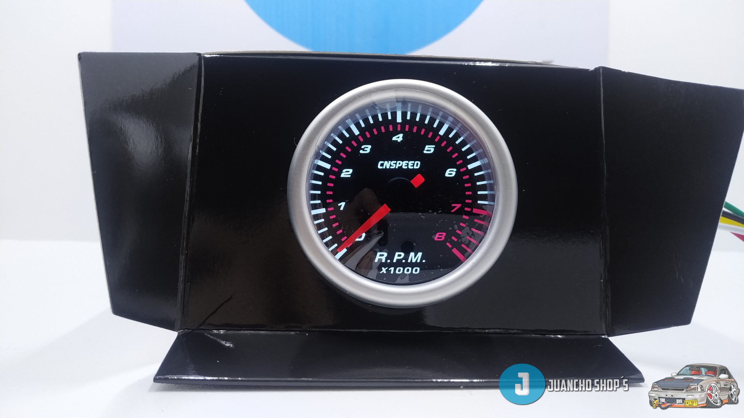 Tacometro universal de 52 MM para motores de 4 / 6 a 8 cilindros con cristal polarizado que permite una mejor visualización durante el día y la noche, iluminación led super blanco para el panel de instrumento y la aguja led rojo.