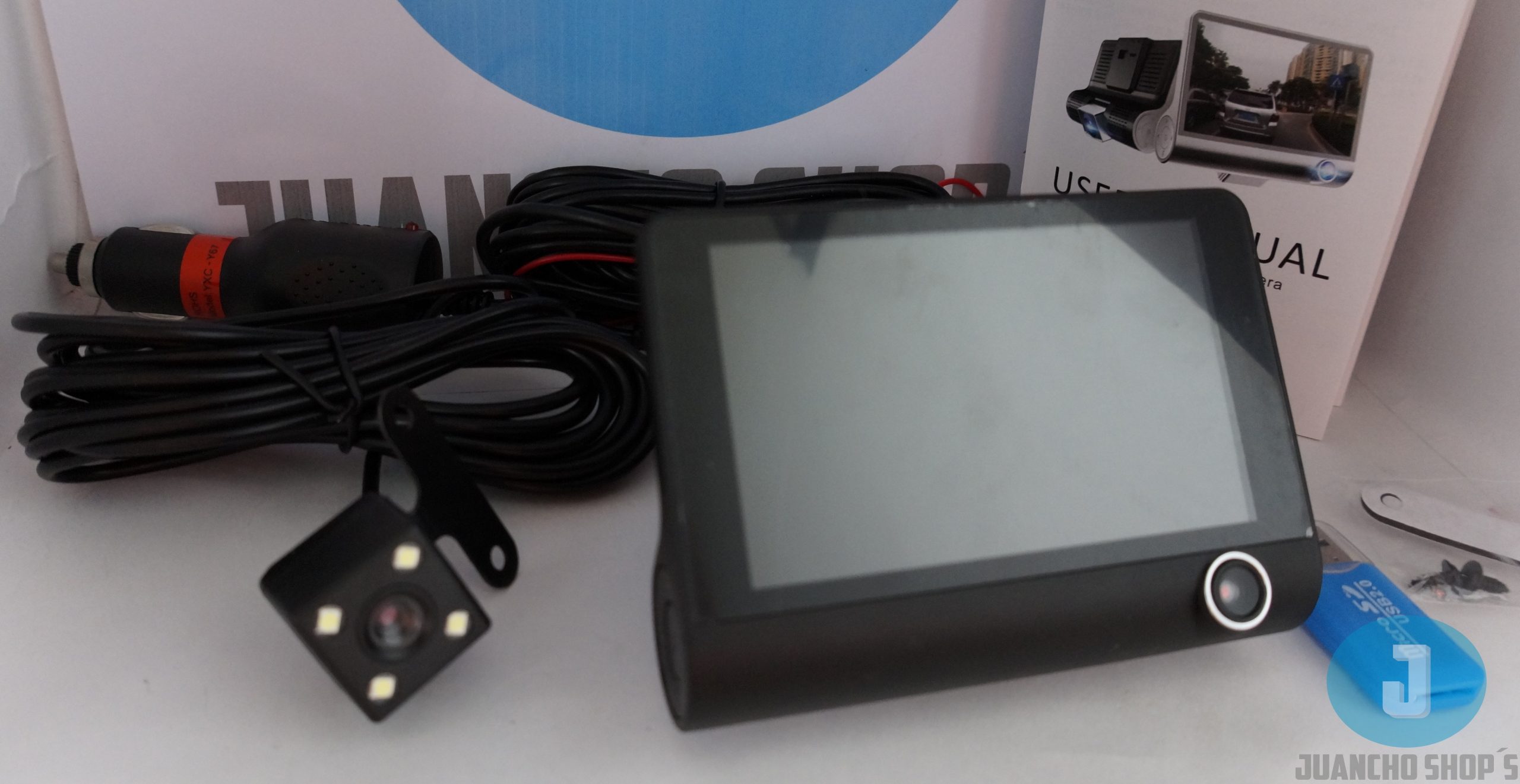 - Cámara con 4 leds y vision nocturna para reversa y grabación trasera.