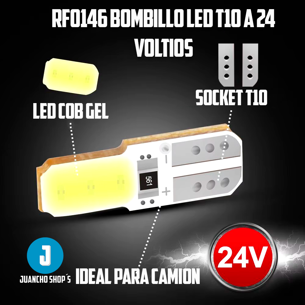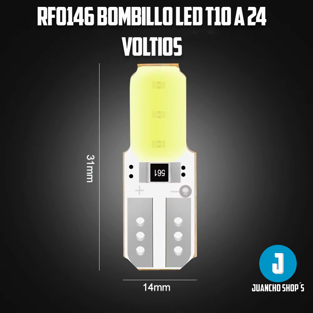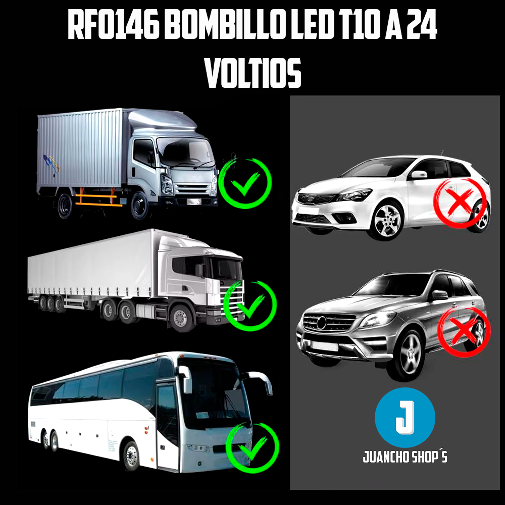 Inicio Catalogo Catalogo de vehiculos Catalogo Celulares Catalogo Video Juegos Catalogo Motocicletas Contacto Ubicacion y Medios de pago Menu Inicio Catalogo Catalogo de vehiculos Catalogo Celulares Catalogo Video Juegos Catalogo Motocicletas Contacto Ubicacion y Medios de pago 300 5736885 PrevAnterior SigienteNext RF0146 Bombillo LED T10 a 24 Voltios Informacion del producto. Bombillo LED T10 para 24 Voltios.Para camiones y vehiculos que trabajan a 24 voltios luz led T10, se puede usar en el tablero, en luces de cortesia en maletero etc. CaracterÃsticas: LED de 2SMD con Chip COB LED protegido con silicon Lumes 200LM Voltaje 24V Incluye: LED COB 24V Instalacion Precio - COMPRAR *El precio no incluye gastos de envio ni instalacion**El precio no incluye gastos de envio Contacto Telefonos de contacto: 300 573 6885 – 300 7254998 – 350 8763116Direccion: Cra 46a No 52 38 Itagui Los Naranjos Ubicacion