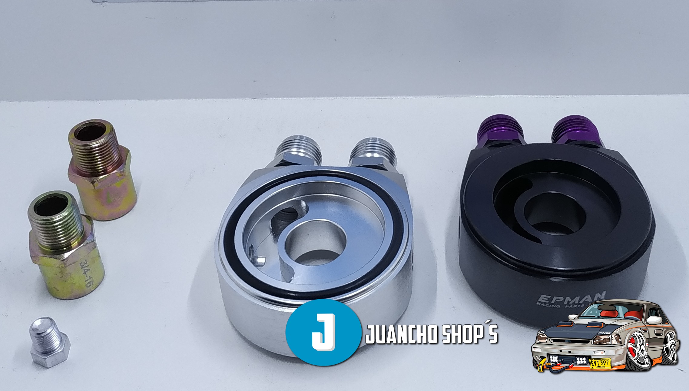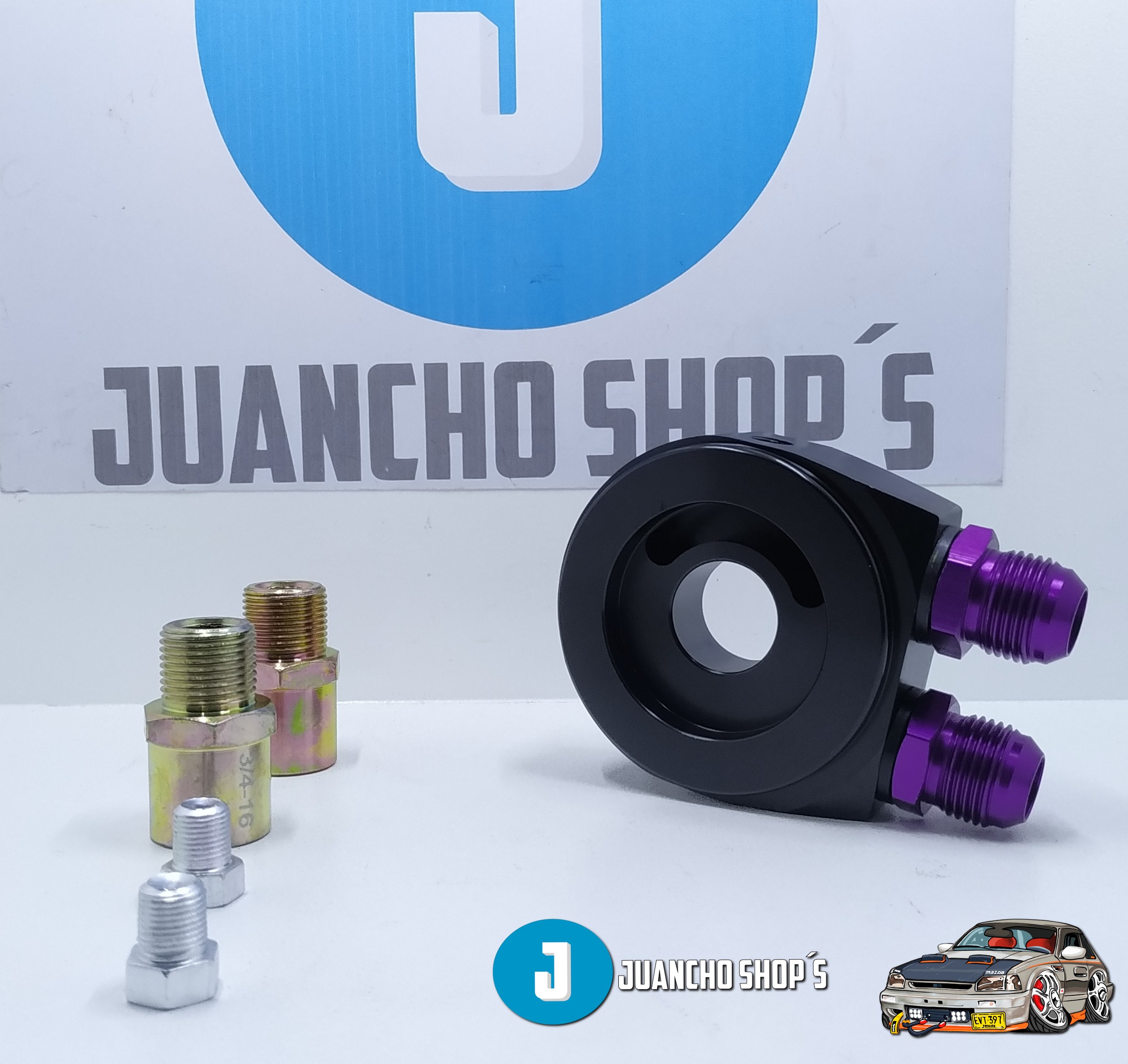 Aplicacion universal para casi todos los carros, incluye par de racores para conectar los relojes de temperatura y presion de aceite, fabricado 100% en aluminio anonizado, instalacion facil sin hacer mayores modificaciones en el motor. Se monta entre el bloque del motor y el filtro del aceite. Entrada y salida para mangueras AN10, ideal para refigerar turbos y aceites de motor.