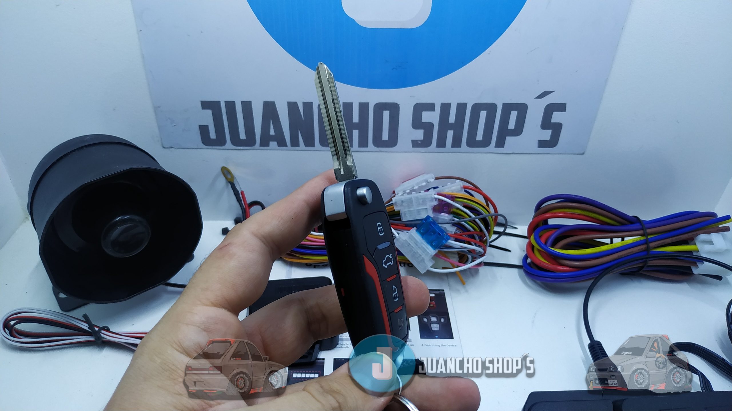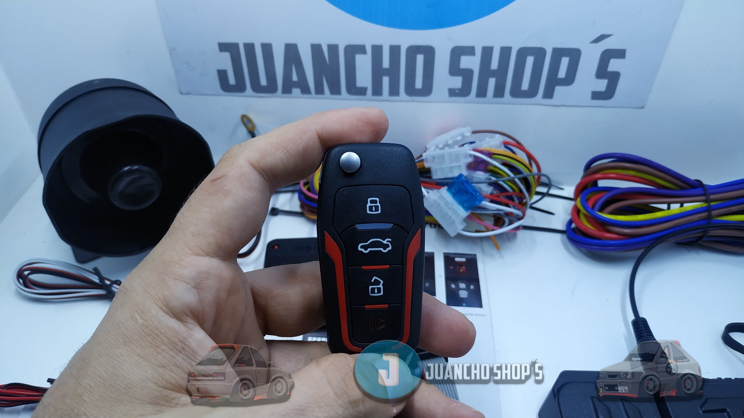 Controles tipo navaja que permiten encender el carro de manera remota en un canal encriptado, además cuentan con sensores de proximidad para desbloqueo o bloqueo automatico de puertas.
